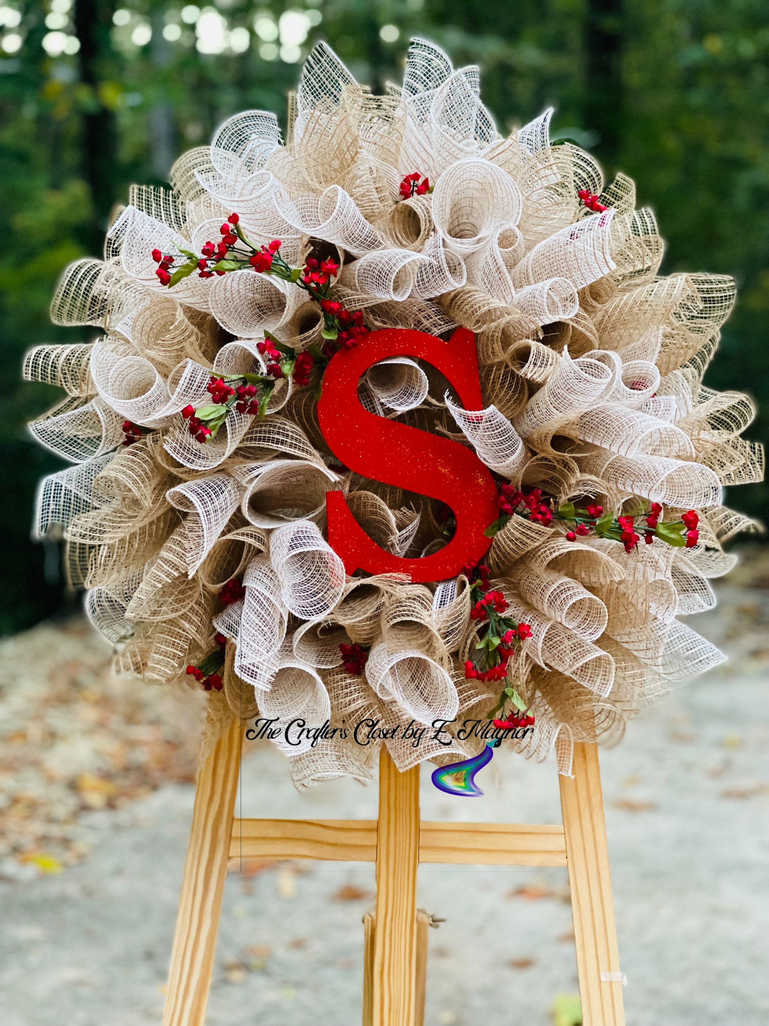 Classic DecoMesh Initial Wreath $85.00 20 inch Grapevine Floral Initial Wreath $135.00 Teacher Wooden Door Round $55.00